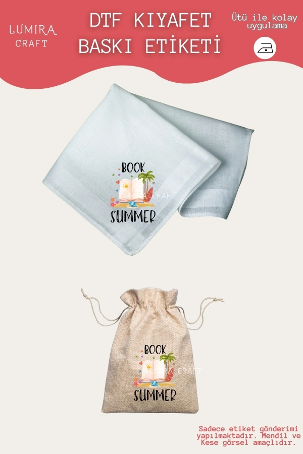 Book Summer Mendil ve Kese Baskı Kağıdı, Okuma Bayramı, Ütü ile Yapışan DTF Transfer, Mezuniyet,