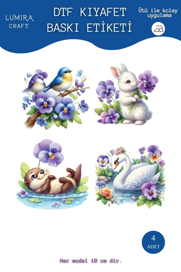 Çiçekli Bahar Haynvanları, Spring Kumaşa Ütü ile Yapışan DTF Transfer Baskı Kağıdı