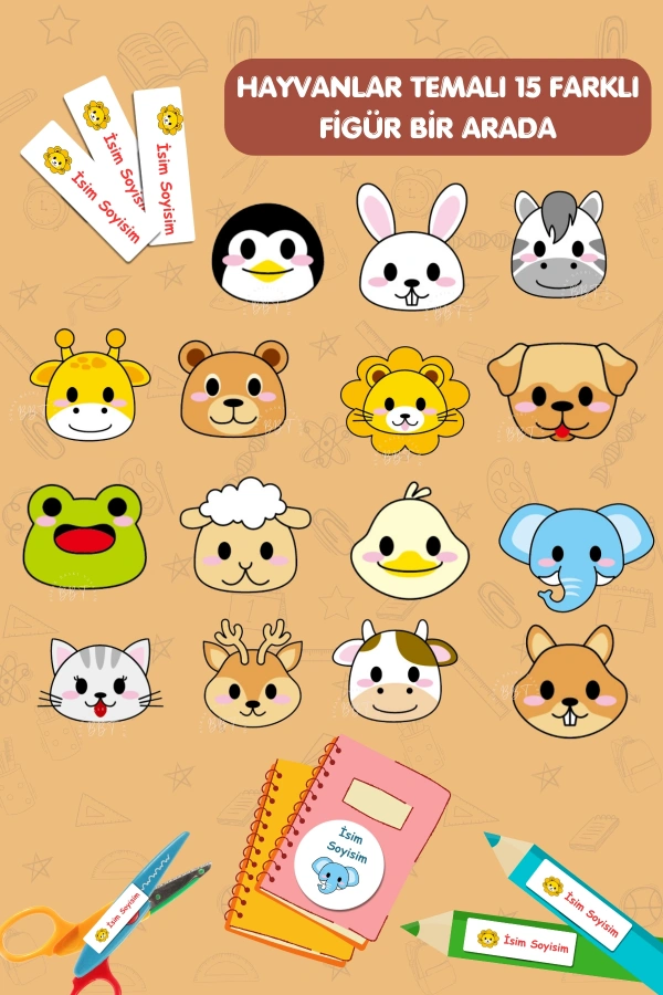 Öğrenciler için hazırlanmış, isimli kalem defter etiket seti,