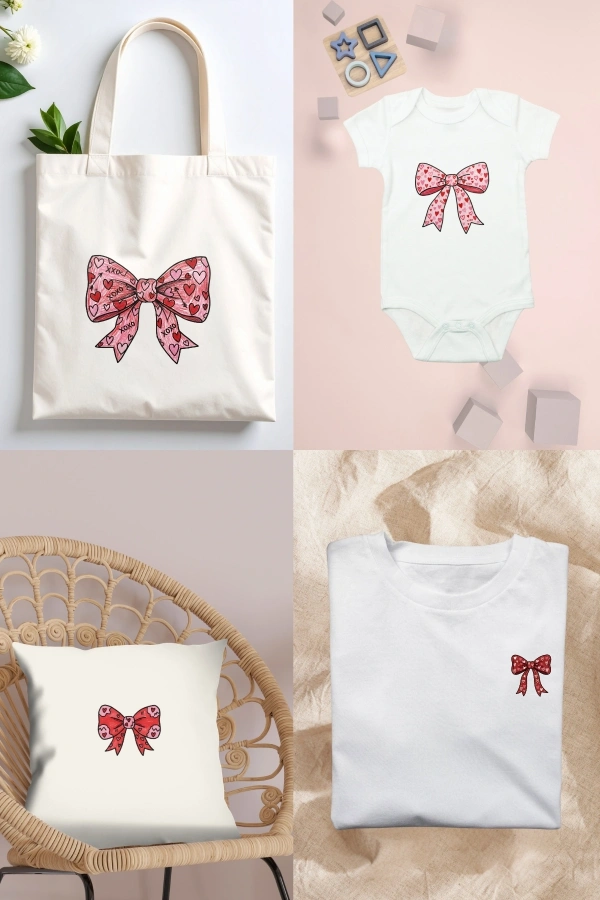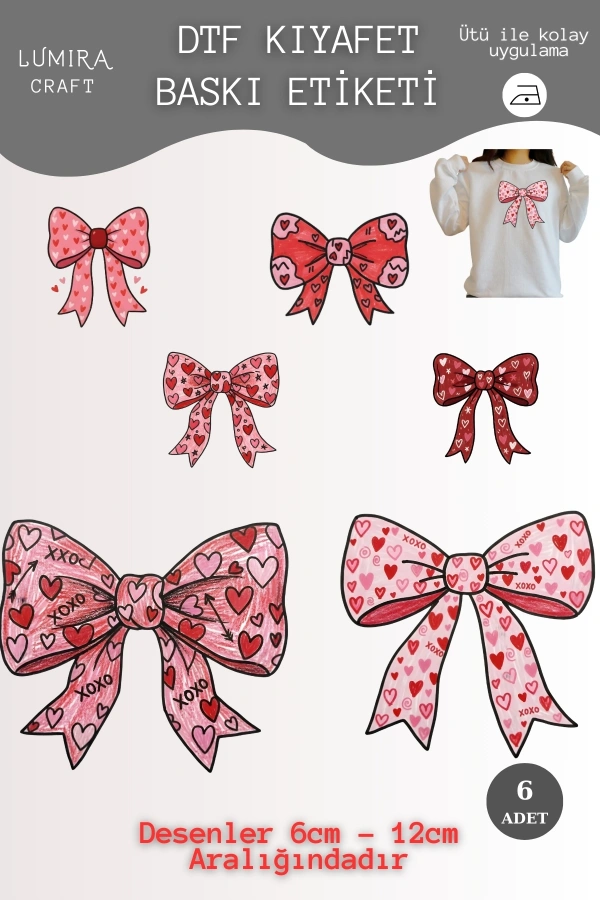 Aşkın En Zarif Hali: Kalpli Fiyonklar! ✨ Sevgililer Günü romantizmini son dönemin popüler fiyonk trendiyle buluşturduk. Bu Kalpli Fiyonk Kurdele DTF Transfer Baskı Kağıdı, kıyafetlerinize hem tatlı hem de modern bir dokunuş katar. Sadece bir ütü yardımıyla saniyeler içinde tişört, sweatshirt, yastık kılıfı veya bez çantalarınızı profesyonel bir tasarım ürününe dönüştürebilirsiniz. Kumaşla mükemmel bütünleşen, esnek ve yıkamaya dayanıklı yapısıyla bu zarif kurdeleler, stilinizi her ortamda öne çıkaracak. Sev