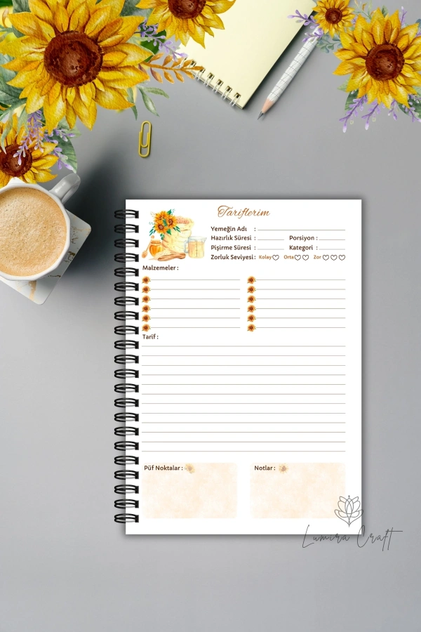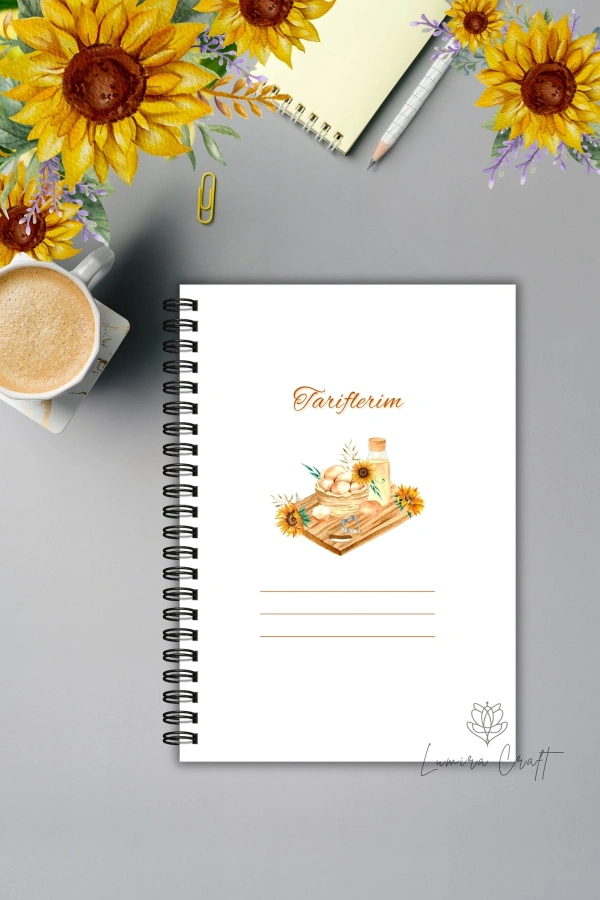 - Annelerin gizli tariflerini saklamak için ideal, nostaljik ayçiçeği desenli yemek tarif defteri.