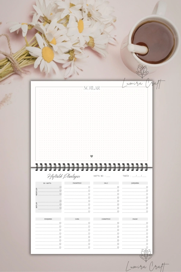 Pamuk Çiçeği A5-Haftalık Planlayıcı , Weekly Planner, To Do List-Konsept Not Defteri, Notepad