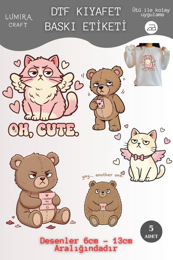 Sevginizi Kumaşlara İşleyin! ✨ En sevilen iki dost olan Ayıcık ve Kedi'nin en romantik halleriyle tasarlanan bu DTF Transfer Baskı Kağıdı, Sevgililer Günü hediyelerinizi kişiselleştirmenin en tatlı yolu. Ütü ile saniyeler içinde tişört, sweatshirt, yastık kılıfı veya bez çantalara kolayca uygulayabilirsiniz. Yüksek çözünürlüklü renkleri ve yıkamaya dayanıklı esnek yapısıyla sevginiz her zaman taze kalacak. Kendi "çift kombinlerinizi" oluşturmak veya sevdiklerinize el yapımı sıcaklığında bir hediye sunmak iç
