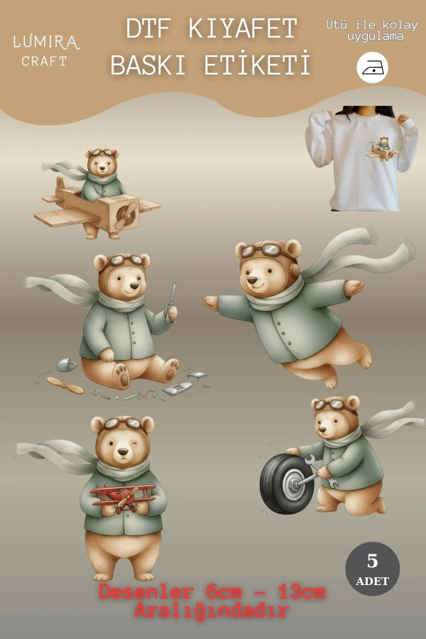 Teddy Bear, Pilot Ayı , Kumaşa Baskı Yapılabilen Ütü ile Yapışan DTF Tekstil Transfer Baskı Kağıdı