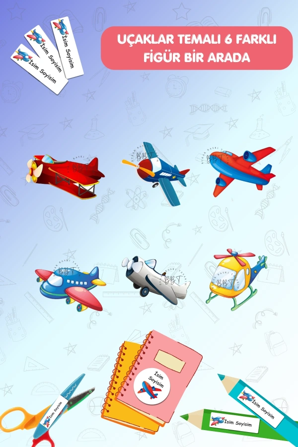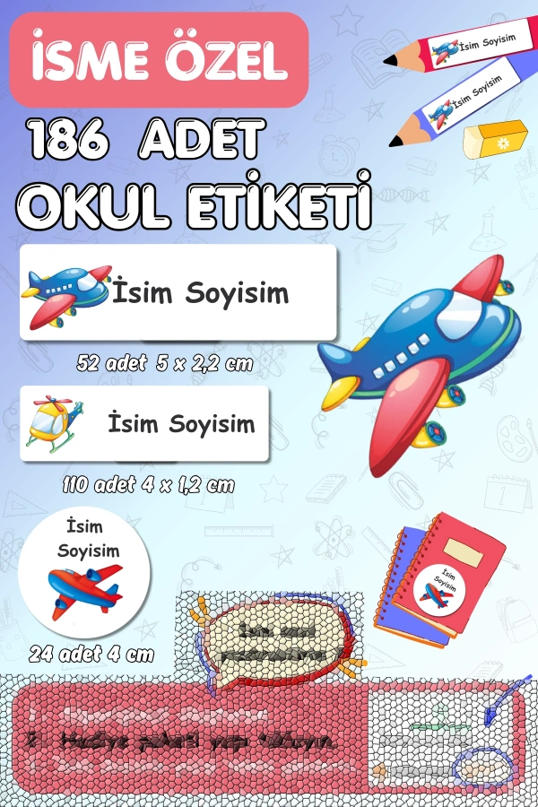 Öğrencileriçin hazırlanmış, isimli kalem defter etiket seti,